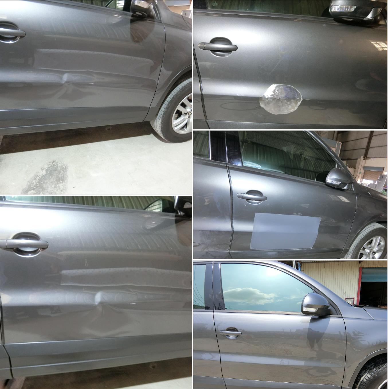 本文將詳細介紹AMG鋁合金車門凹陷的修復過程。這是一個精密的修復工作,我們使用了先進的技術來修復鋁合金車門。鋁合金車體結構,不同於一般車體結構,鋁合金張力更小、硬度更硬。鋁合金板金並不是使用鐵槌敲打塑型,華信汽車使用專門的鋁合金植釘機,藉由外在拉力,將車門凹陷處由內往外拉出,將車身鈑金定位到原來位置。之後華信汽車使用鋁合金專用鍍鋅補土補修車門,補土完畢後再依照車身號碼調漆並烤漆,讓汽車烤漆完工之後能像原廠剛出廠一樣無色差。